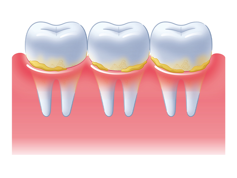 歯肉炎を放置すると細菌が増殖し、特有の口臭が発生しやすくなります。歯肉炎から歯周炎へと進行すると、周囲を不快にするほど強い口臭へ発展してしまうこともめずらしくありません。また、骨が溶けはじめると、それにあわせて歯ぐきも下がっていくため、「歯が長く見える」など見た目の問題を生じてしまうこともあります。