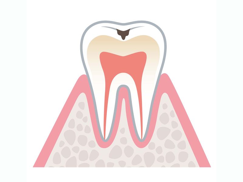 歯の表面のエナメル質に穴が開いた状態です。細菌に感染した部分だけを削り取り、詰め物をして進行を防ぎます。
