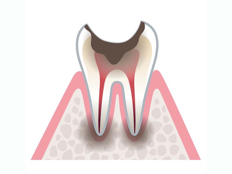 歯の象牙質に進行した状態です。甘いものや冷たいものが歯にしみる可能性があります。虫歯を削ったうえで、詰め物や被せ物を取り付けます。